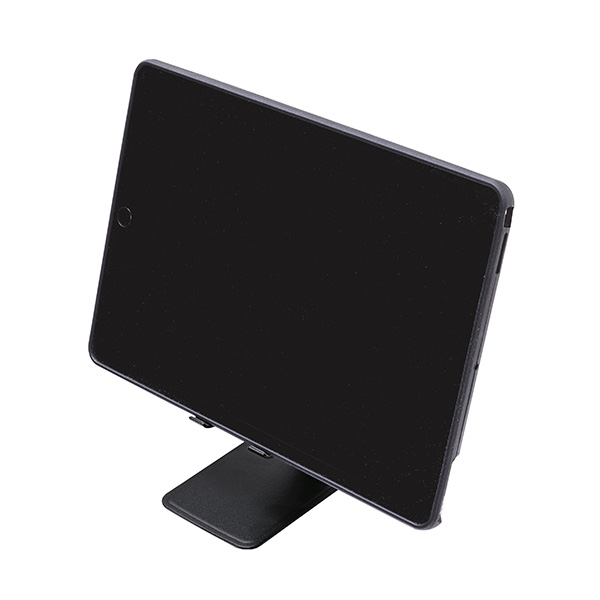 高級感がある素材でタブレットにも対応。デスクに1台あると便利なスマホスタンドです。