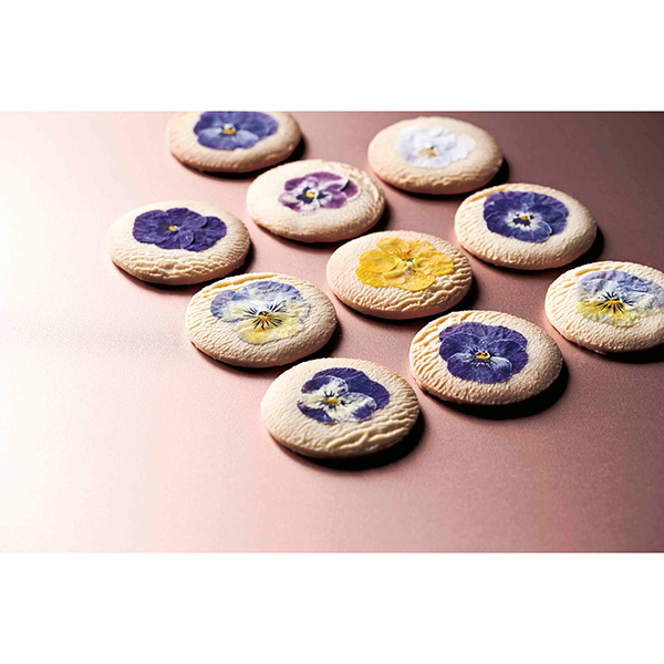たまごを使わず、まろやかで優しい味わいに仕上げました。美しい花を添えたクッキーが心華やぐ時間をお届けします。
