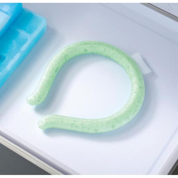 約28℃以下で自然凍結するPcm素材を使用しており、冷凍庫はもちろん、水道の流水でも凍結します。