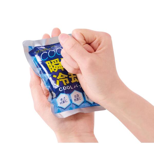 パン!と叩くだけで手軽に冷やせる瞬間冷却パックは、熱中症対策の必需品。冷却効果や使用用途をパッケージデザインで表現しております。