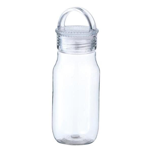 透明度が高く衝撃に強いポリカーボネート製のドリンクボトル。蓋は持ち運びやすいハンドルタイプ