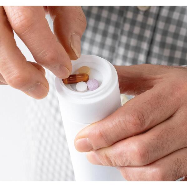 蓋部分に薬やサプリメントが入れられる!出先でも飲み忘れない便利なミニボトル