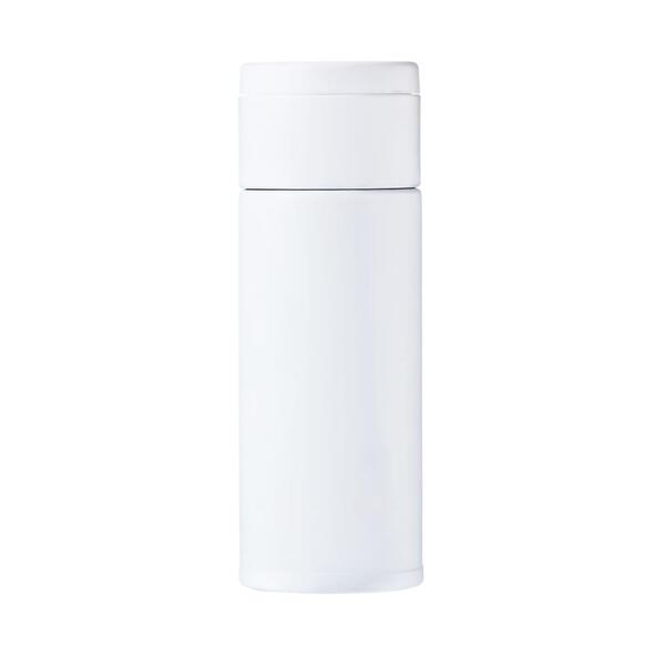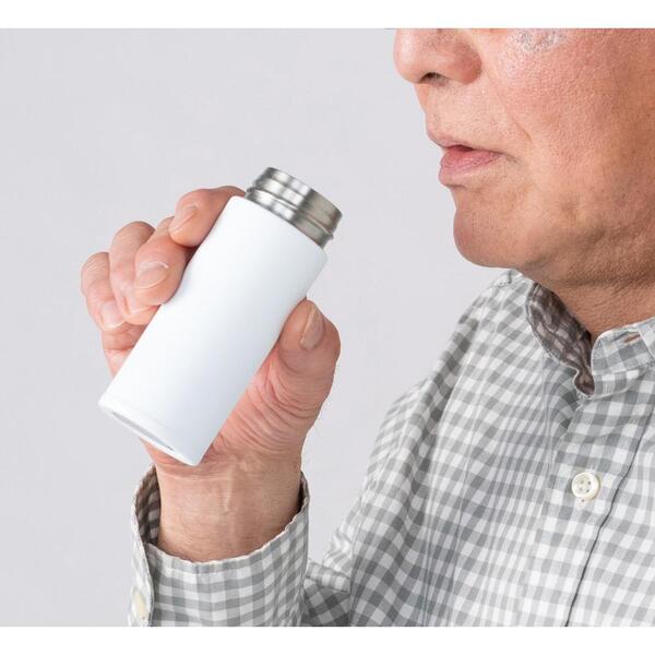 ボトルに水を、蓋部分に薬などを入れて用意しておけば、飲み忘れを防ぐ新たな新習慣に。ボトルは名入れが映えるホワイトボディ。シニア向けの記念品や健康食品のノベルティーとしておすすめです。