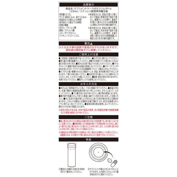 サプリメントケース付きスリムボトル120ml