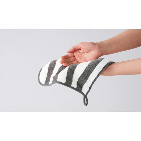 やわらかな手ざわりで乾きやすいマイクロファイバー製のハンドタオルとウォッシュタオル。家族とおそろいで使える2枚セットです。どちらも吊り下げられるループ付きなので、洗面所やベビーカーなどでも使いやすい。