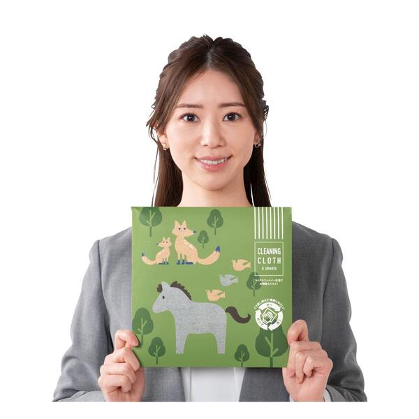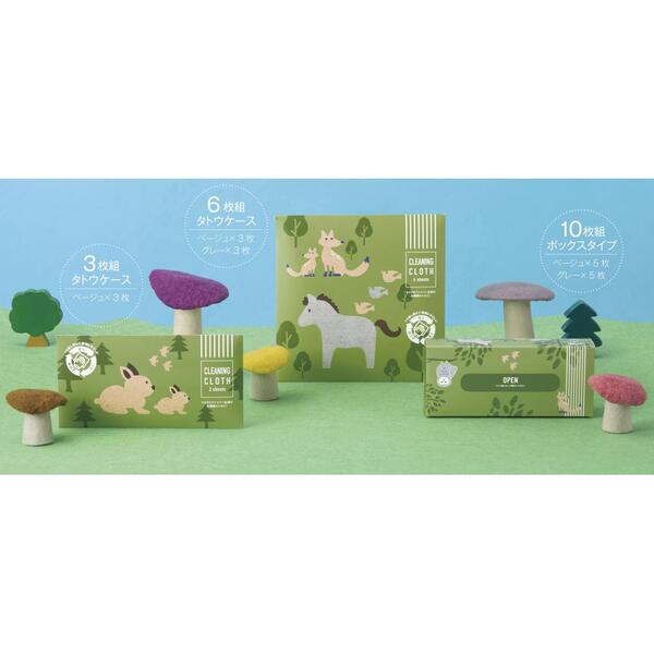 森のどうぶつたちがデザインされたパッケージに、毎日の拭き掃除に使えるマルチクロスが入っています