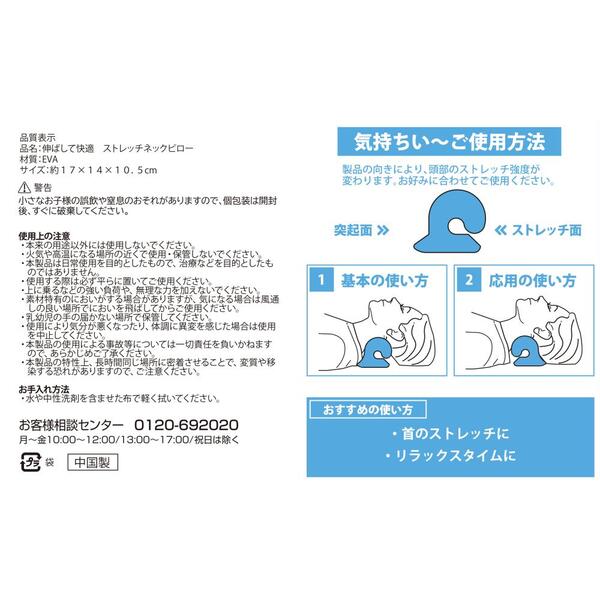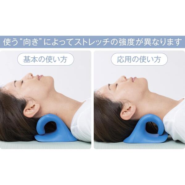 痛キモチよさがクセになりそう!本体の使う向きによってストレッチの強度が異なります。基本の使い方は、本体の開いている方を外側に向けて、応用の使い方は開いている方を体側に向けてゆっくり首を載せてください。デスクワーカーや健康を気にする方向けのノベルティーに。