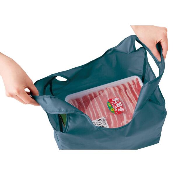 自転車のカゴにも収まりやすく、トレー付きの食材も平置きできるマチ広のエコバッグ!選べる4色展開