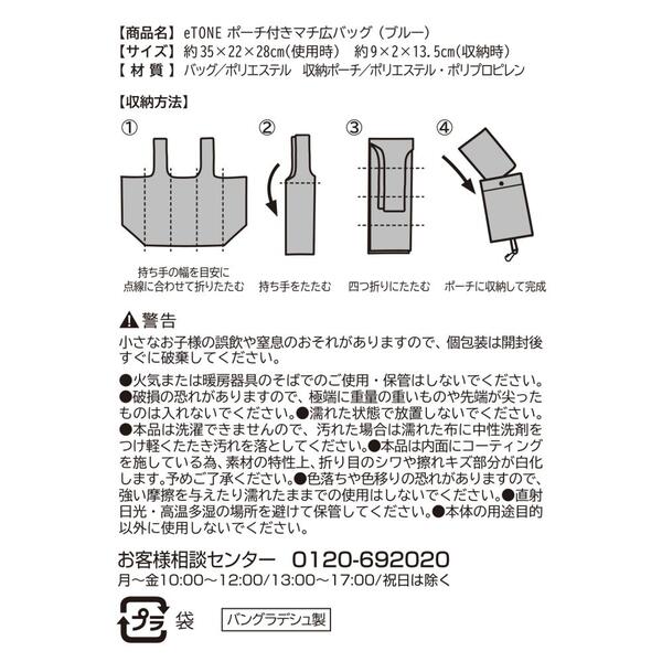eTONE ポーチ付きマチ広バッグ(ブルー)