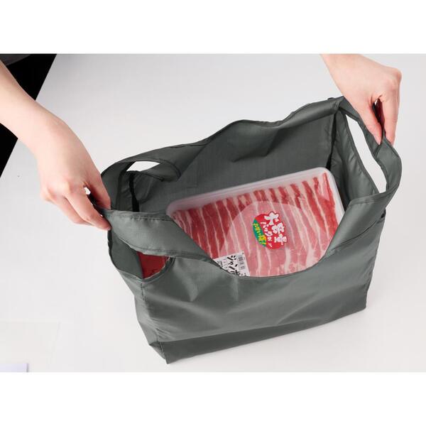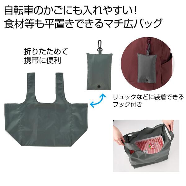 自転車のカゴにも収まりやすく、トレー付きの食材も平置きできるマチ広のエコバッグ!選べる4色展開