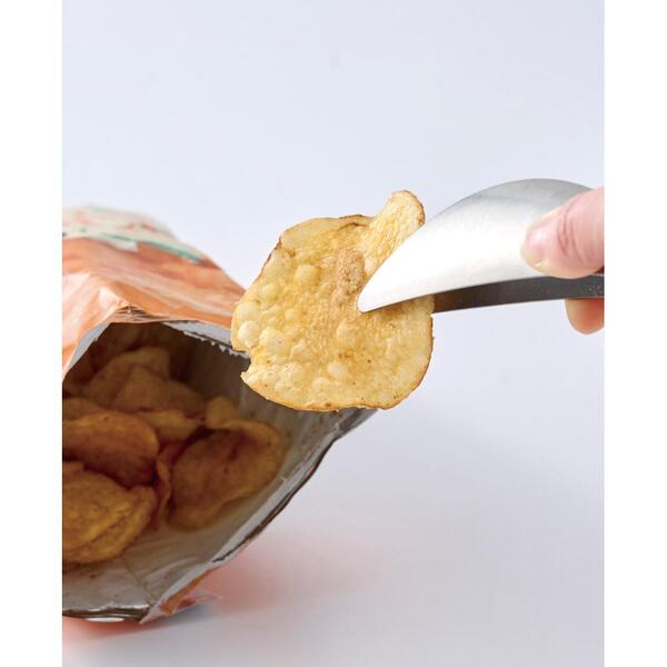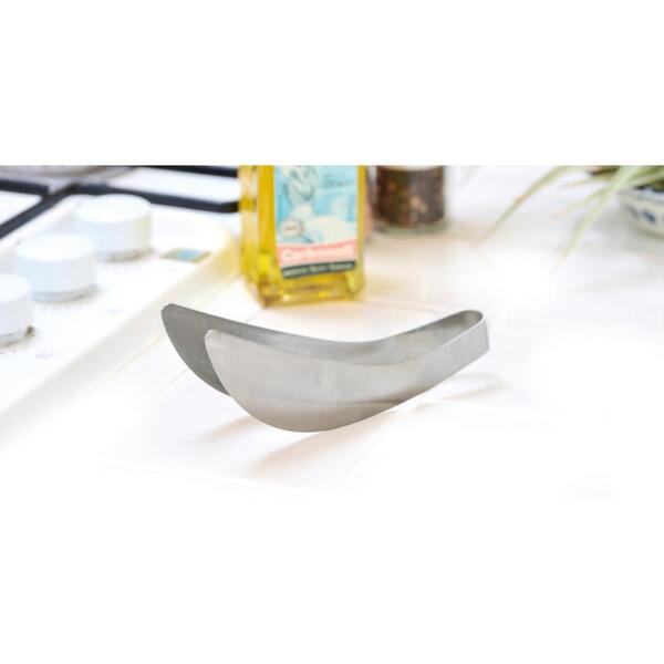 絶妙なカーブで、テーブルにそのまま置いても先端が下に付かないので衛生的です。オールステンレス製なのでレーザー名入れも可能です。