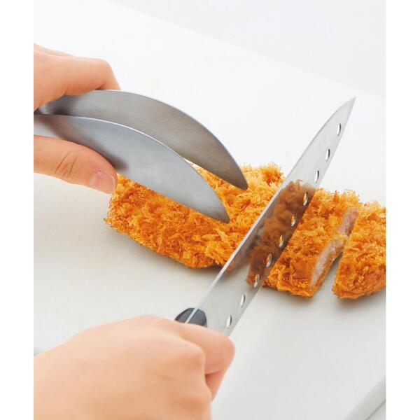 薄切り肉の取り出しや、揚げ物や小さな材料を切る時に押さえたり、大皿料理の取り分けなどにも使いやすい。