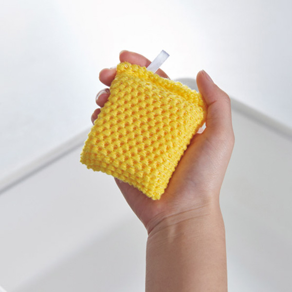 アクリル繊維のパワーで洗剤なしで汚れが落ち、掴みやすく洗いやすい手のひらサイズが魅力です。
