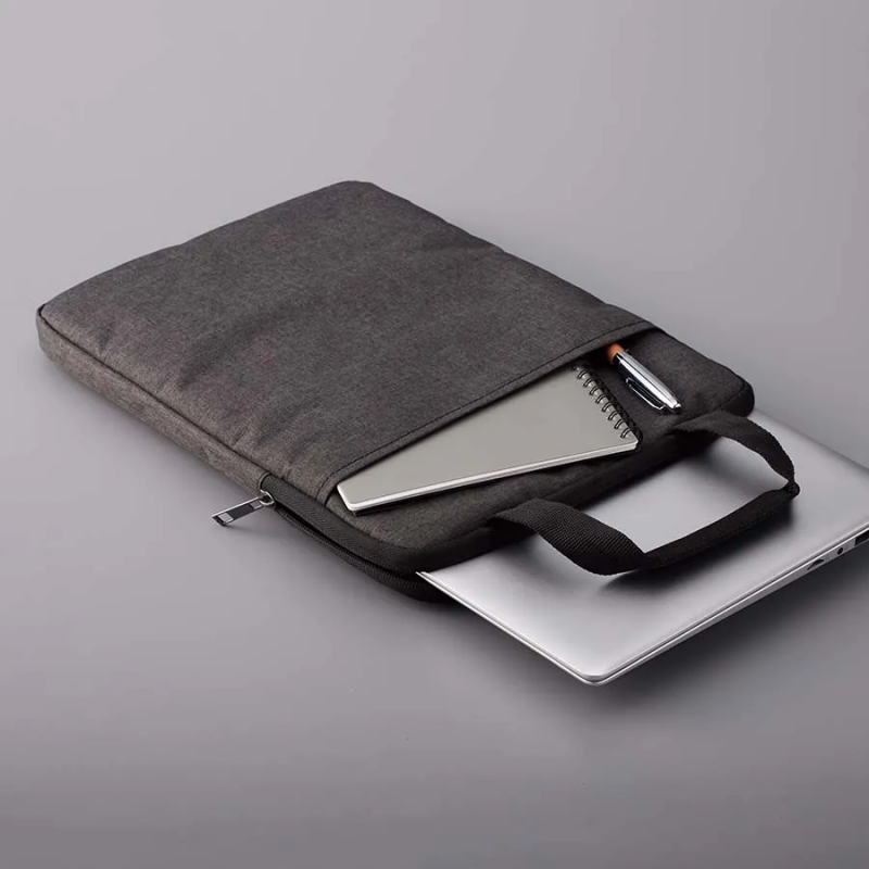 PCを傷付けずに持ち運びが可能で、内側にポケットがついているので文房具や小物を収納することが可能です。バッグインバッグとしてもお使いいただけます。カラーはブラックとグレーの2色展開、単色印刷からフルカラー印刷まで対応可能です。社内の賞与品やビジネスマン向けの物販品としてもおすすめの商品です。