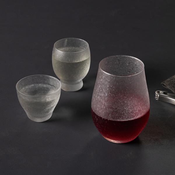 表面の特殊な加工が清涼感を一層引き立て特別感を際立たせるグラスです。