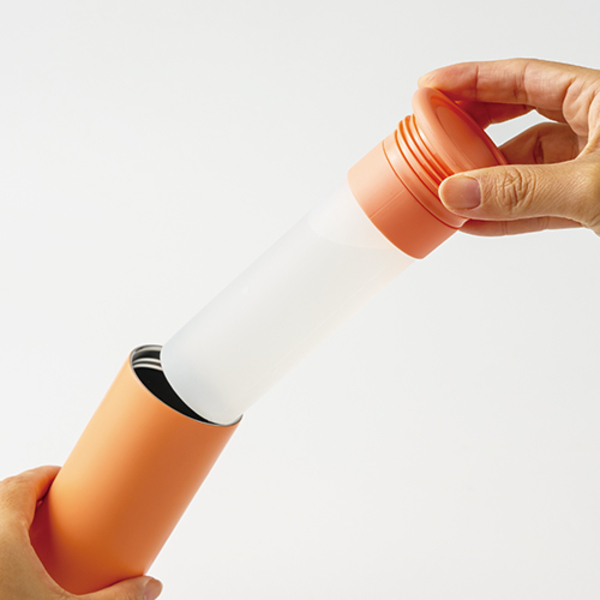 外側は魔法瓶タイプの真空二重構造で内側のシリコーンゴムに水を入れて凍らせれば、冷たさを長時間キープします。