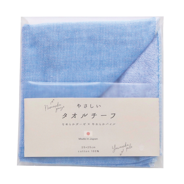 表面がガーゼ、裏面がパイルのタオルチーフ。極細糸で織り上げた、薄さと柔らかな風合いが特徴です。