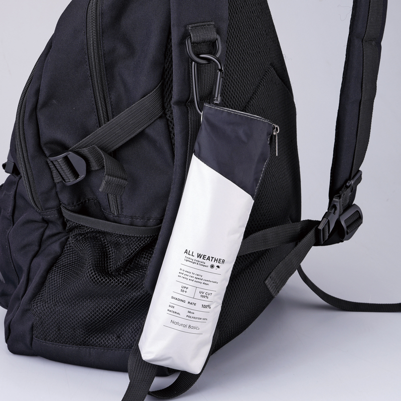 5本骨×グラスファイバーで軽量なので、バッグに入れてもカラビナで吊り下げて携帯しても快適。
