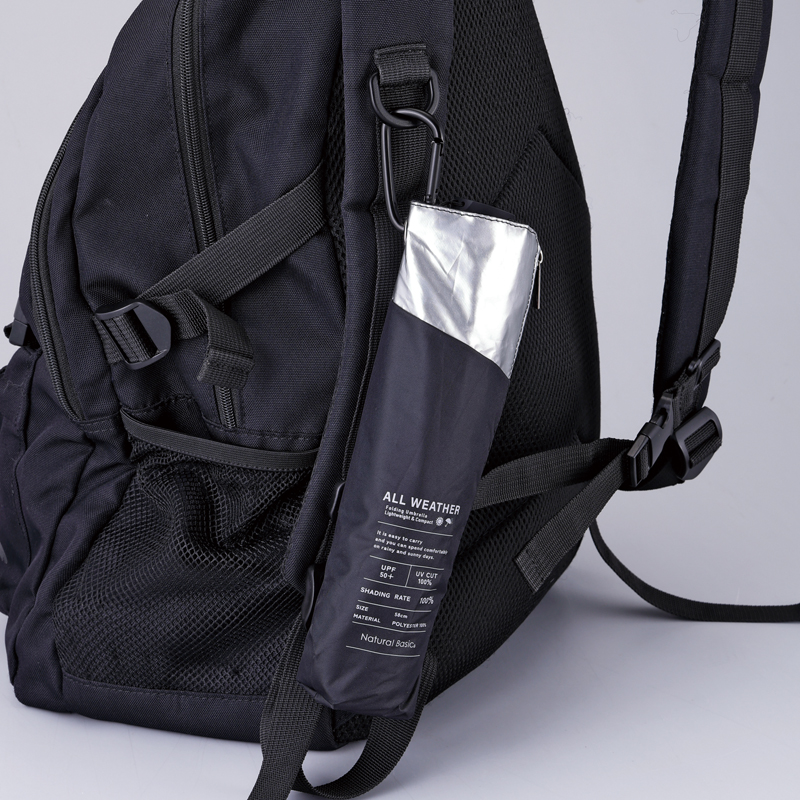 5本骨×グラスファイバーで軽量なので、バッグに入れてもカラビナで吊り下げて携帯しても快適。