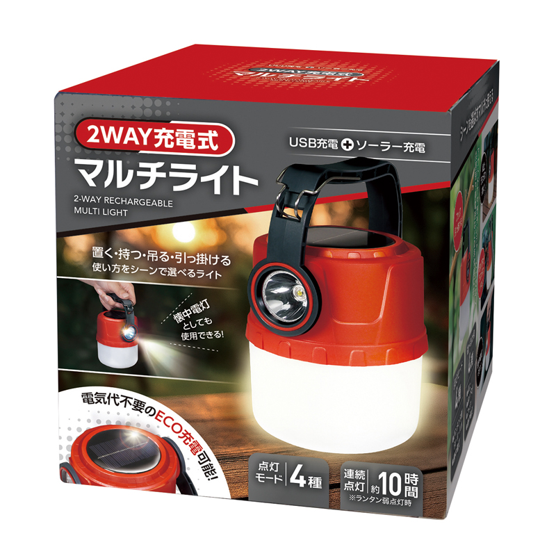 ソーラー&USB充電式マルチライト(レッド)