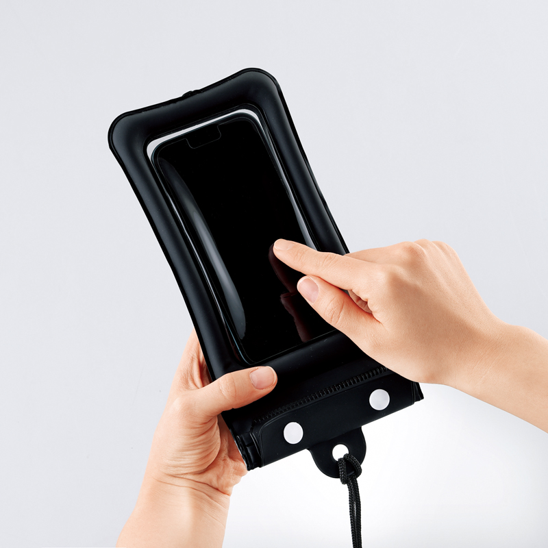 三重ジッパー+ボタンで安心密封。入れたままタッチ操作も可能な、レジャーやアウトドアの必需品。