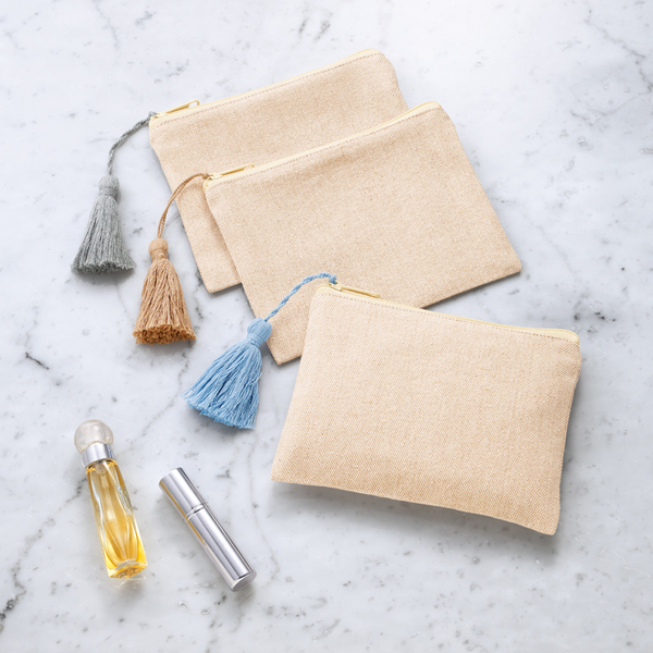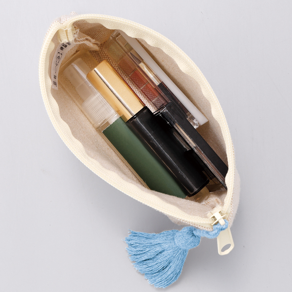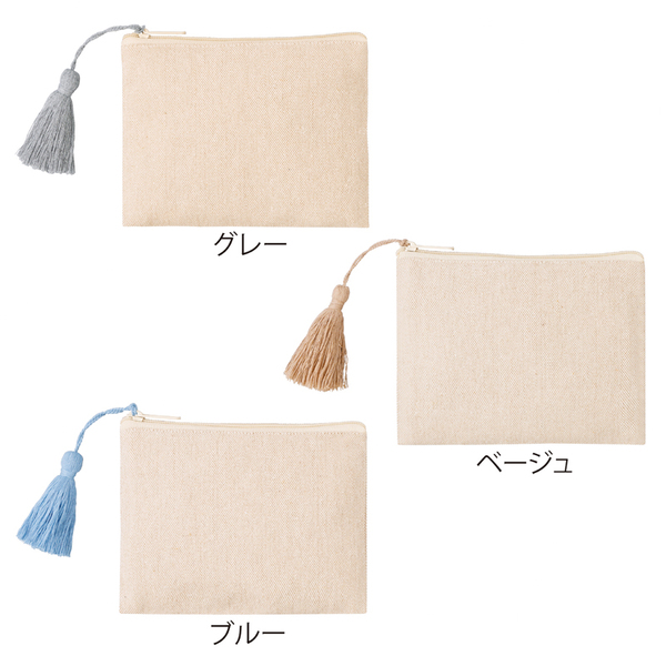 リサイクルコットンタッセル付きフラットポーチ(ブルー)
