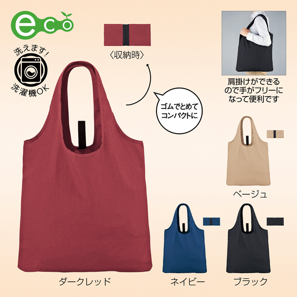 くすみカラーとマルシェ型が特徴のお洒落なエコバッグ。ナイロン素材でワンランク上の高級感を。