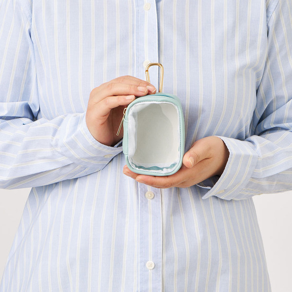 本体前面は中身が見えるクリア素材で、ぬいぐるみや推し活グッズを収納・保護することができます。
