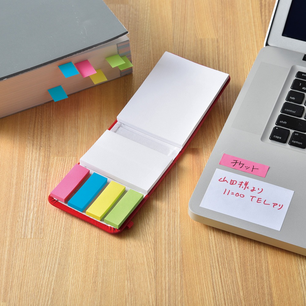 4色ふせんと大小メモのセットに丈夫な表紙が付きました。