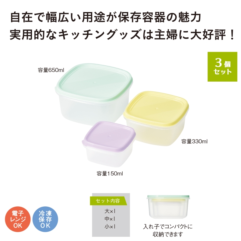 | 備考 | ≪セット内容≫大・中・小 容量/大:650ml・中:330ml・小:150ml |
