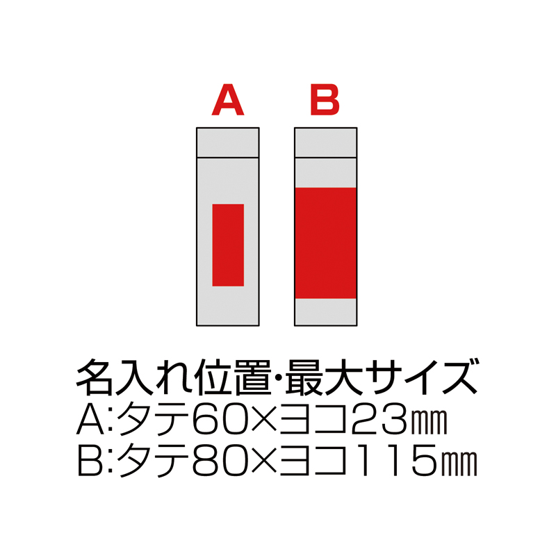 | 印刷・範囲 | 【名入れ印刷:100個〜対応】 パッド印刷・範囲:H60×W23mm 回転シルク印刷・範囲:H80×W115mm |
