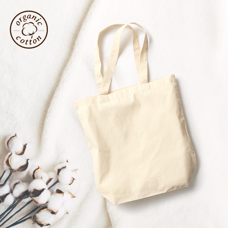 シンプルな無地のコットンバッグは名入れ印刷をすれば、備品や副資材、ノベルティ、物販品まで幅広く活躍します。
